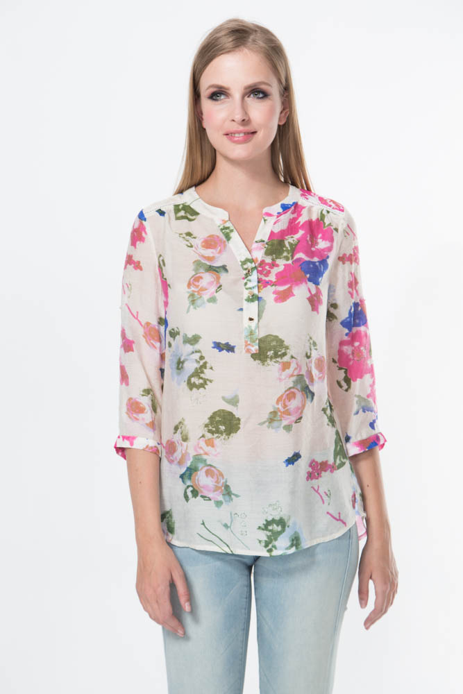 Блузка 3/4 рукав.Очаровательная модель блузки, яркая и очень нежная. Застежка спереди на пуговицы золотого цвета.Рукав можно сделать короче, зафиксировав манжеты специальными застежками-планками на пуговицу. Блузка невероятно легкая и воздушная.